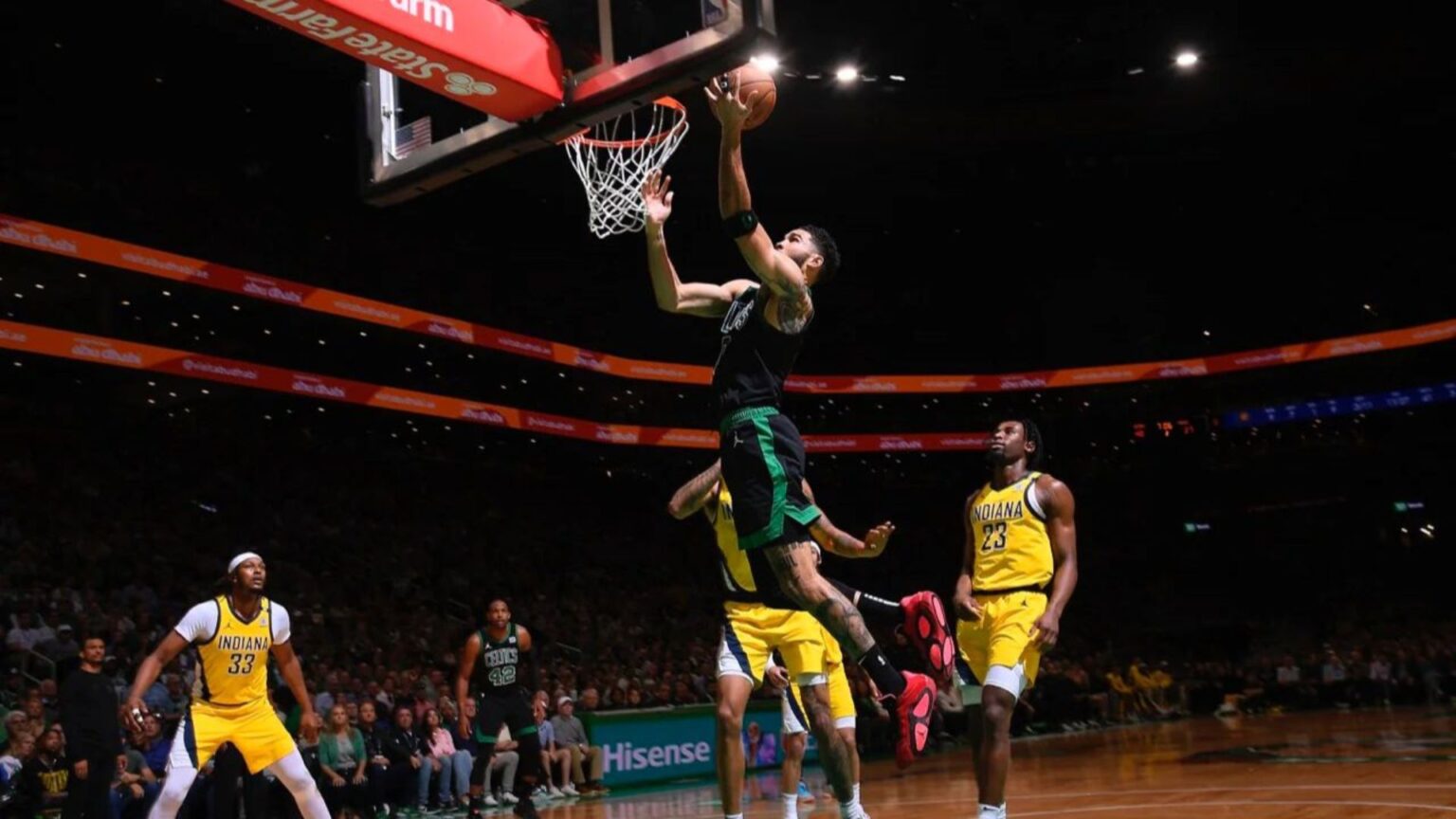 Tyrese Haliburton não voltou para o último período, dando lugar a Doug McDermott. Com o caminho aberto, o Celtics procurou explorar a fragilidade do adversário com uma troca intensa de passes no setor ofensivo. Tanto Brown quanto Tatum conquistaram pontos fundamentais após uma verdadeira aula de ball movement. Mazzulla, aparentemente satisfeito com o que estava acontecendo em quadra, deu lugar a Sam Hauser, na esperança de fechar a partida com auxílio de suas bolas de três. Nada feito. Rick Carlisle tirou Pascal Siakam, Aaron Nesmith e Myles Turner, dando lugar aos reservas com nove minutos por jogar no relógio e diferença de quinze pontos para Boston. O amasso deixou de parecer algo distante e com boa contribuição de Jayson Tatum, o Celtics chegou a dezenove pontos à frente. Com a vitória garantida, Mazzulla pediu tempo e tirou os titulares, deixando em quadra uma rotação formada por Pritchard, Svi, Hauser, Brissett e Tillman. Os reservas mantiveram a larga vantagem e garantiram a vitória pelo placar de 126 – 110.